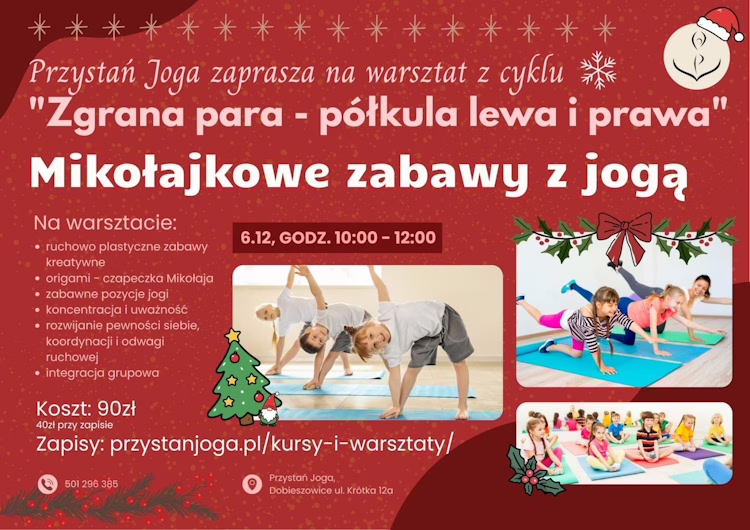Czytaj dalej „Mikołajkowy wieczór w Przystani Joga”Mikołajowa joga, zabawa półkulowa – warsztaty dla dzieci (6–12 lat)